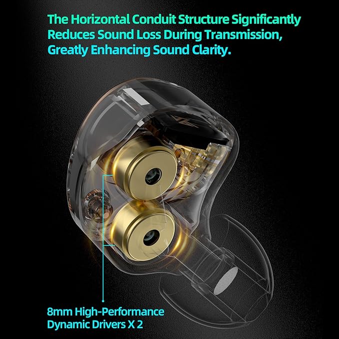 - 【Dual Microphones & Noise Cancellation for Improved Call Quality】In ear monitor headphones abandons the ordinary single microphone and innovatively adopts dual 6mm diameter professional condenser microphones, effectively suppressing environmental noise (sensitivity -26dB). It clearly captures voices, enabling stress-free calls even during commutes or in noisy environments. Natural conversations are reproduced without needing to bring the microphone close to your mouth.