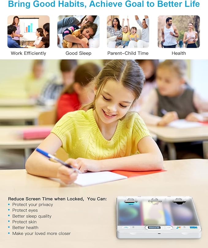 ySky Phone Lock Box with Timer for iPad Under 11inch,Timed Lock Box for iPhone,Tablet,Folded mobiles,Phone Locker for Children to Reduce Screen Time to get Focus Back