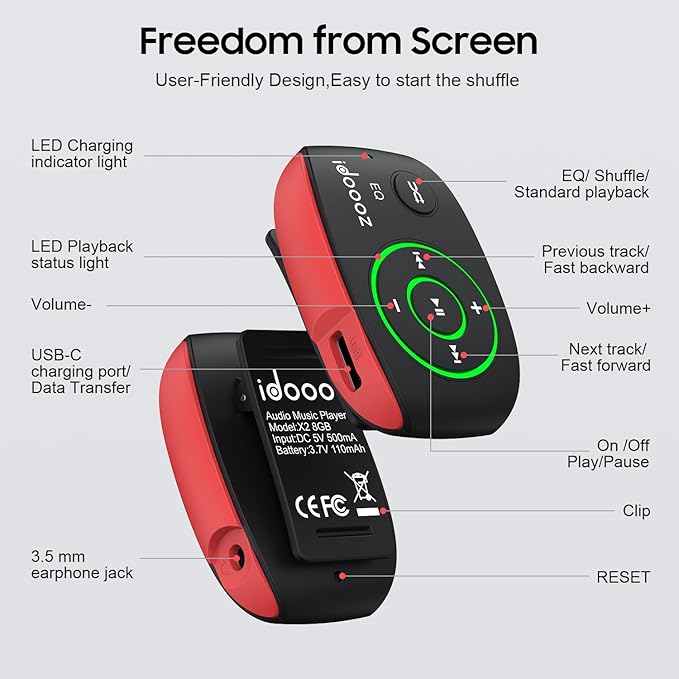 - [Clip-on design] This MP3 player is suitable for outdoor sports or use in the gym. You can carry it with you for various outdoor activities. The clip-on design on the back can be securely attached to your clothes, belt, or backpack. Perfect for exercise/gym use, which is a good entertainment for jogging running and other sports. Enjoy music while breaking free from the constraints of the screen.