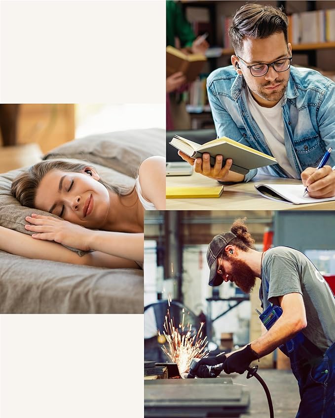 - Ergonomic Design:The ear plugs for sleep are designed with a bionic jellyfish and fit the ear canal 360 degrees. Even if you lie on your side or turn over, The sleeping ear plugs not easy to slip off. Breathable and comfortable, no pain to wear for a long time.It's worth mentioning that the non-in-ear design of our upgraded ear plugs for noise reduction eliminates the need to insert them deeply into the ear canal, thus avoiding the risk of hearing loss.