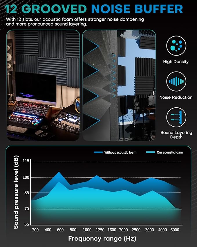 - ODOR-FREE & ECONOMICAL – Our acoustic foam panels are designed for personal studio spaces, offering a low-odor, non-toxic solution for a comfortable environment. Perfect for studios, theaters, and game rooms, they are easy to install on walls, doors, and ceilings, providing cost-effective sound control.