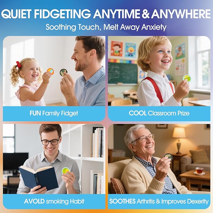 - Portable & Convenient: Small and compact, the fidgets for adults and kids fits easily in your pocket or wallet; Whether you're in the office, at home, or on the go, these quiet fidget toys allows you you to enjoy quiet, de-stressing fun anytime, anywhere