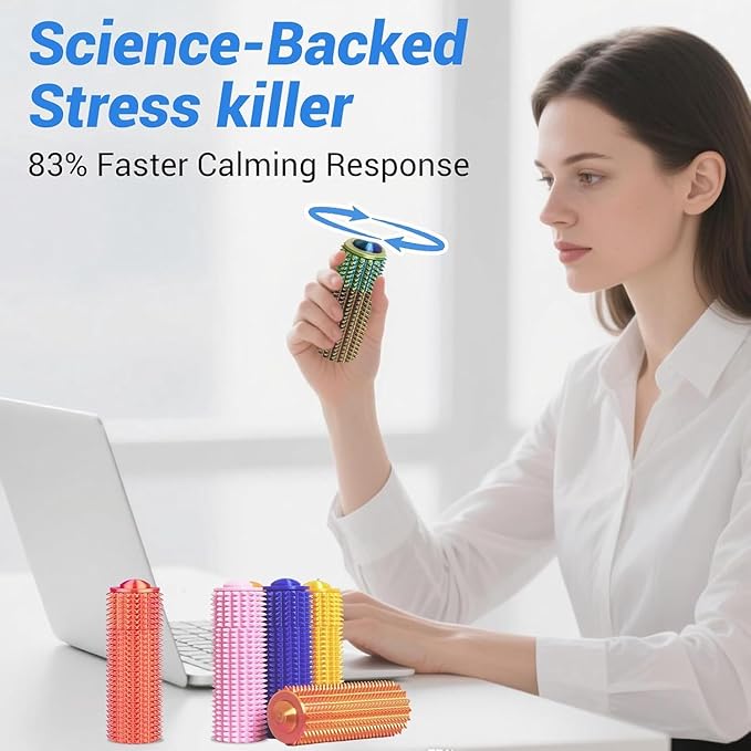 • Unique Stimulating Design: Featuring a roller shape with spiky sensory toys texture, a pressable button, and rotatable top. At 3.5"x1.2", it’s larger than standard fidget toys, offering a comfortable grip and intense tactile experience. Ideal for stimming toys for autism adults, it helps calm nerves, keep hands busy, and focus the mind.