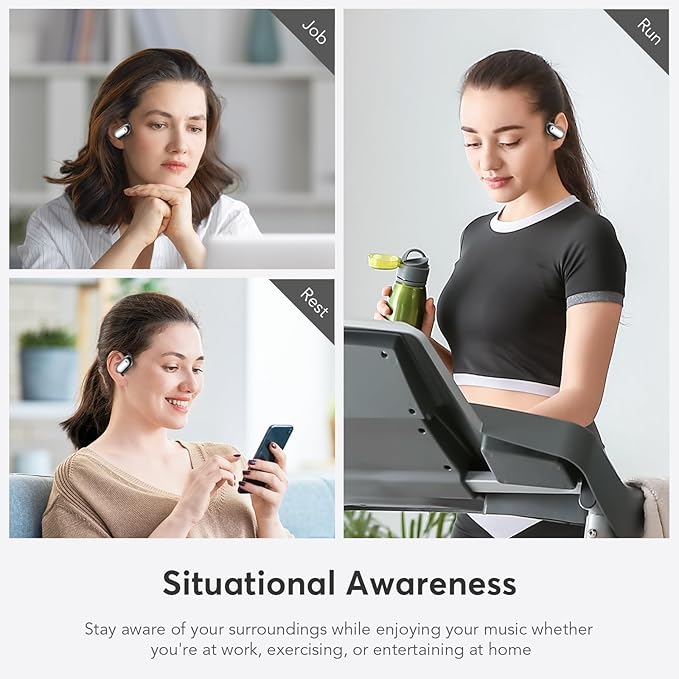 - Open Over Ear Design: Open Ear Bluetooth Headphones feature a revolutionary ergonomic design, allowing you to enjoy your favorite music while staying aware of the surrounding environment. With this innovatively designed sports open earbuds, you can hear external sounds clearly without compromising on comfort. The open bluetooth earphones has a unique shape, without being plugged into the ear canal, no longer pain your ear because of long time wearing.
