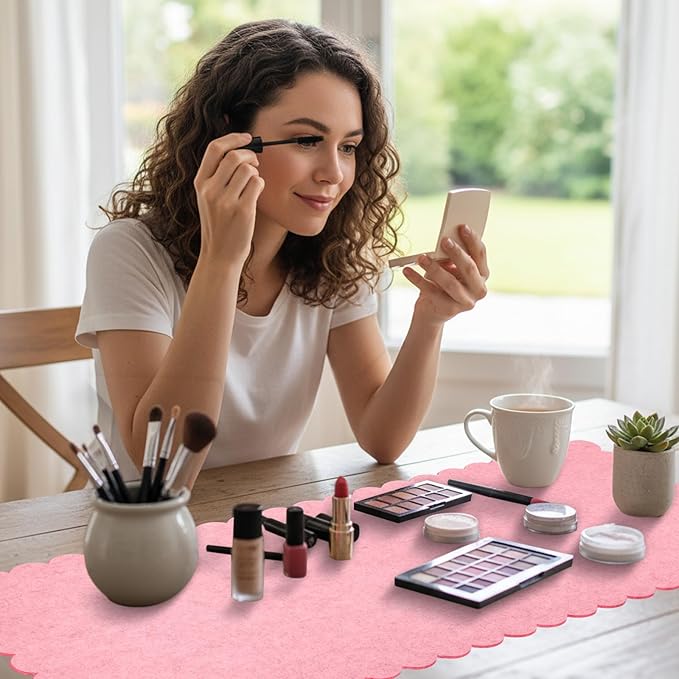 - Practical and Flexible Design: the scalloped desk pad absorbs moisture quickly and dries fast, keeping your workspace tidy; Its flexible and rollable design allows easy transport, so the pink felt mat can be apply on office desks, home tables, or student desks, functioning as both a desk pad and felt gaming pad wherever needed