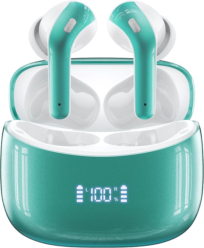 - All-Day Battery Life Bluetooth Earbuds with LED Power Display: These wireless earbuds bluetooth deliver 6 hours of continuous playtime, extended to 40 hours with the 470mAh charging case. A 15-minute quick charge gives 90 minutes of use. Stay informed with the smart LED battery display. Lightweight in-ear headphones with mic keep you powered and connected wherever you go—perfect for workouts, travel, or daily calls