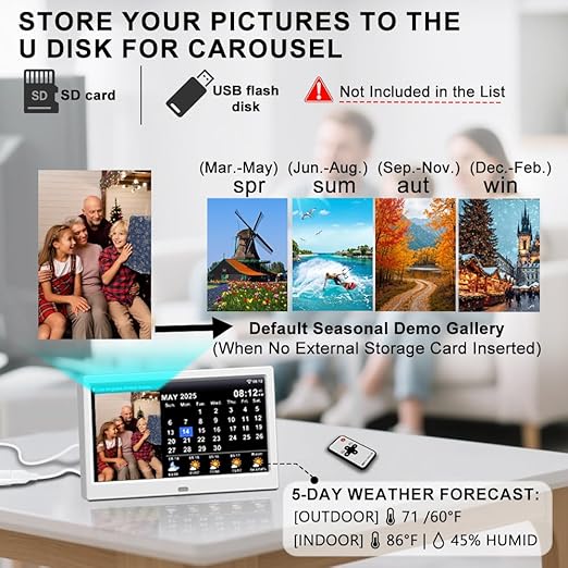 - 【Worldwide Weather & Network Time Sync】:Synchronizes time via network with <1 second deviation. Built-in temperature sensor shows indoor and outdoor temps. Supports manual location via city or GPS coordinates. View current and 5-day weather forecast with calendar and clock modes