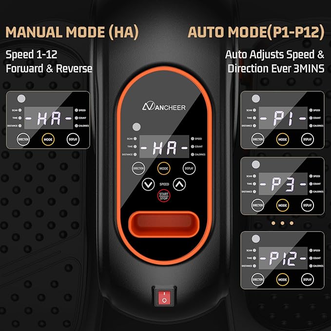 - 【2-in-1 Auto & Manual Modes】The ANCHEER under desk elliptical offers both manual (12 speed levels) and automatic (P1-P12) programs to choose from. Its pedals move bidirectionally, allowing you to adjust the speed to achieve your goals. It's an ideal choice for home or office workouts without putting stress on your joints!