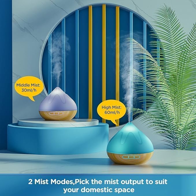 - Large Capacity Aroma Diffuser: 500 ML essential oil diffusers for home is wonderful for large rooms, This diffuser is also includes 9 ambient light chose to create a relaxing feeling to your room and make your life more colorful