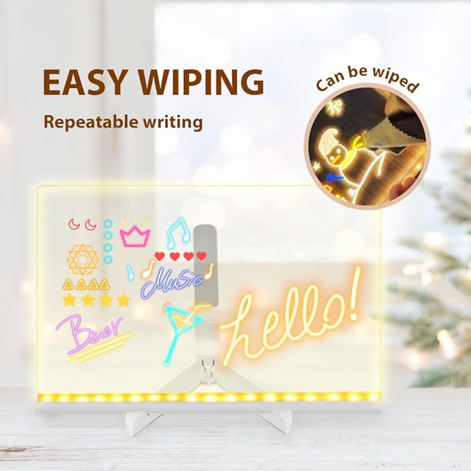 - 【LED Note Board with Colors】Clear acrylic dry erase board with light, classic, fashionable and clear appearance design, perfect for the office, home, or any other environment, glow memo the fashion design adds a unique charm to your desktop.