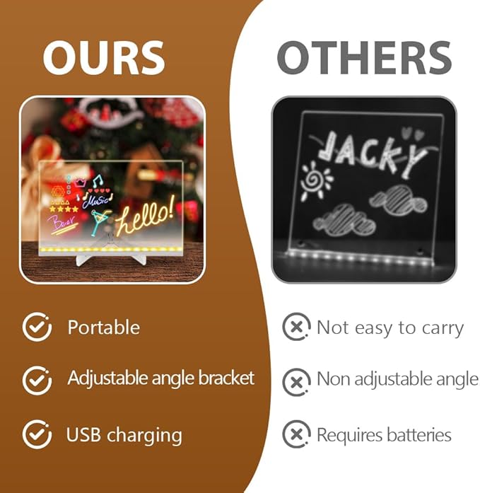 - 【LED Note Board with Colors】Clear acrylic dry erase board with light, classic, fashionable and clear appearance design, perfect for the office, home, or any other environment, glow memo the fashion design adds a unique charm to your desktop.