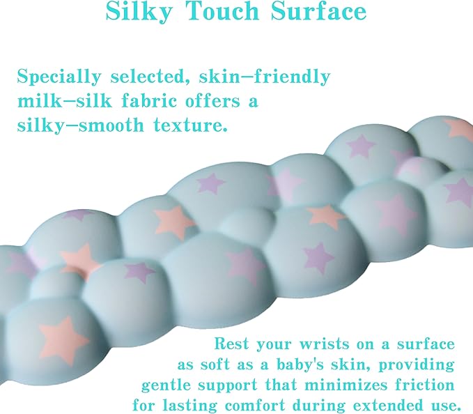 - SOFT COMFORT:This cloud-shaped wrist rest uses a high-density memory foam lining for excellent support and comfort. At the same time, the surface of the wrist rest is made of breathable Lycra fabric to ensure dryness and comfort for the wrist. This design combines softness and support, allowing you to get the best wrist support when using the keyboard.