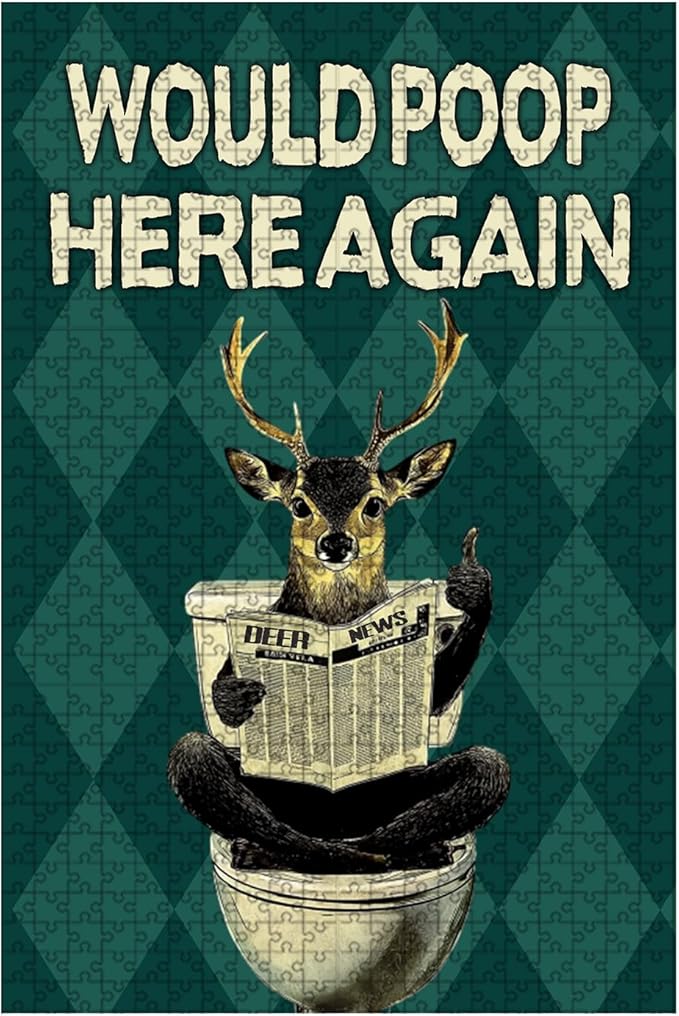 500 Piece Wooden Deer Puzzle Would Poop Here Again Adult Challenge for Focus & Stress Relief 20.4x15 Inch