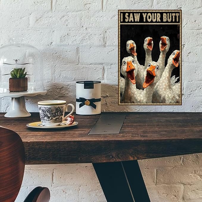 500 Piece Wooden Duck Jigsaw Puzzle I Saw Your Butt for Adults & Kids Challenging Family Activity with Stress Relief & Focus Training 20.4x15 Inch