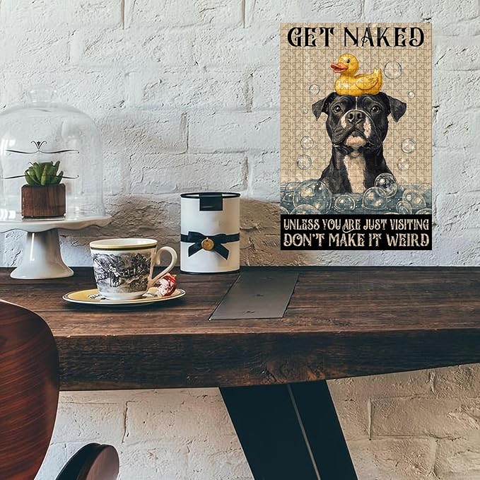 500 Piece Wooden Pitbull Puzzle Get Naked Bathroom Adults & Kids Challenging Game to Relieve Stress Improve Focus & Enjoy 20.4x15 Inch