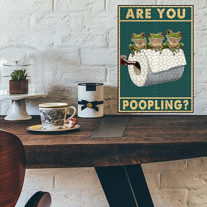 1000 Piece Wooden Frog Jigsaw Puzzle are You Pooping Adults & Kids Time Killing Challenge Stress Relief Quiet Play for Rainy Days Long Car Rides & Indoor Fun 29.5x19.7 Inch